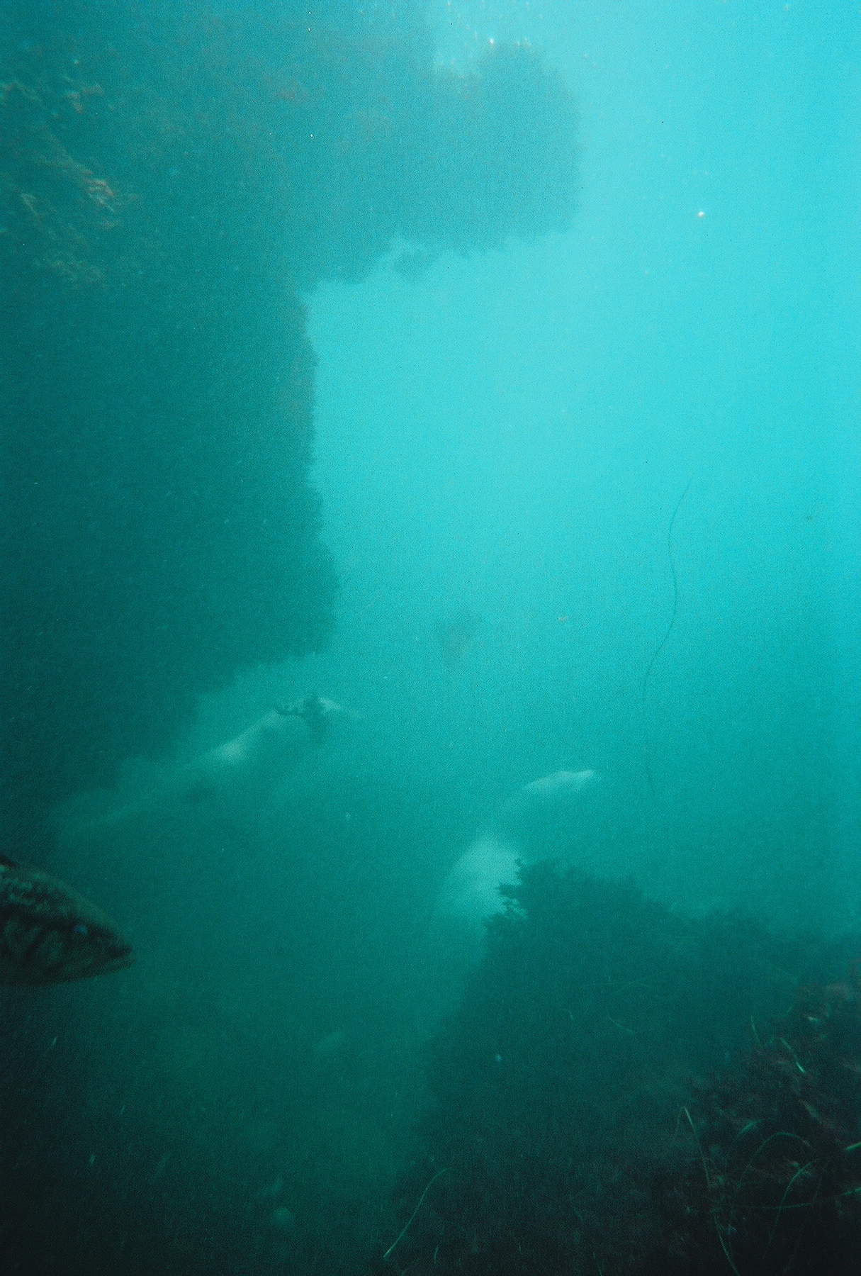 We were swimming near some rocks and this sort of underwater cliff, so I took a big breath and dove down, and hid underneath it. I waited as long as I could, and when I didn’t see her come down I slowly crept out, and as I came out from under the ledge and peeked over the top there she was, just a foot away! I think she was looking for me and when I popped up next to her she jumped back like she was startled and darted off a pace like, “oy, you got me!” My lungs were bursting at this point so I went back up to catch my breath.