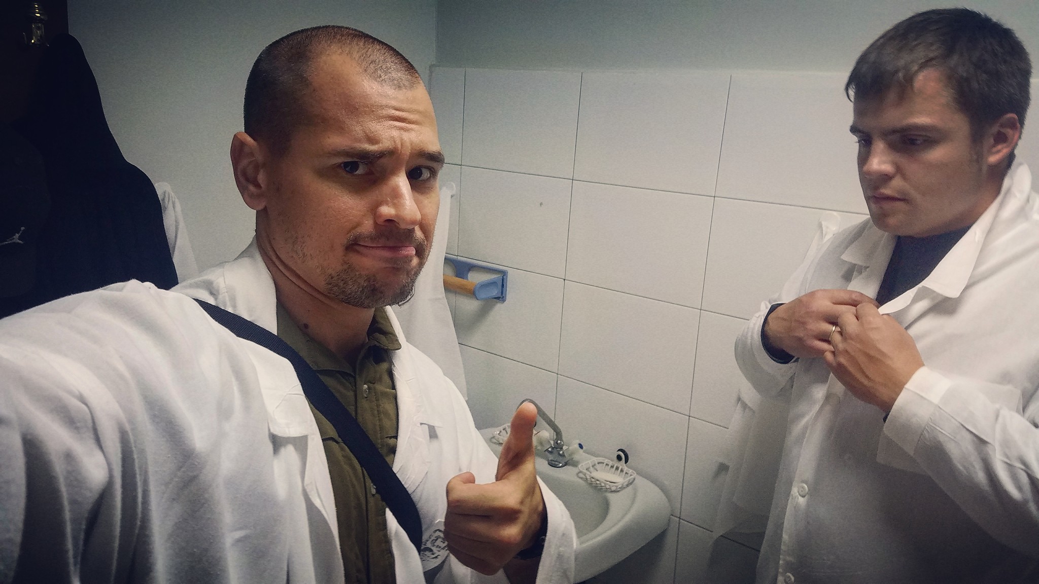 We made it through the fairly informal metal detectors, and were ushered up several flights of stairs by the peevish little plant technician. The building felt like an old high school from. Ceiling tiles and linoleum floors. Cheap. People working there walked past us as if we weren’t there, just another day at the ChNPP.