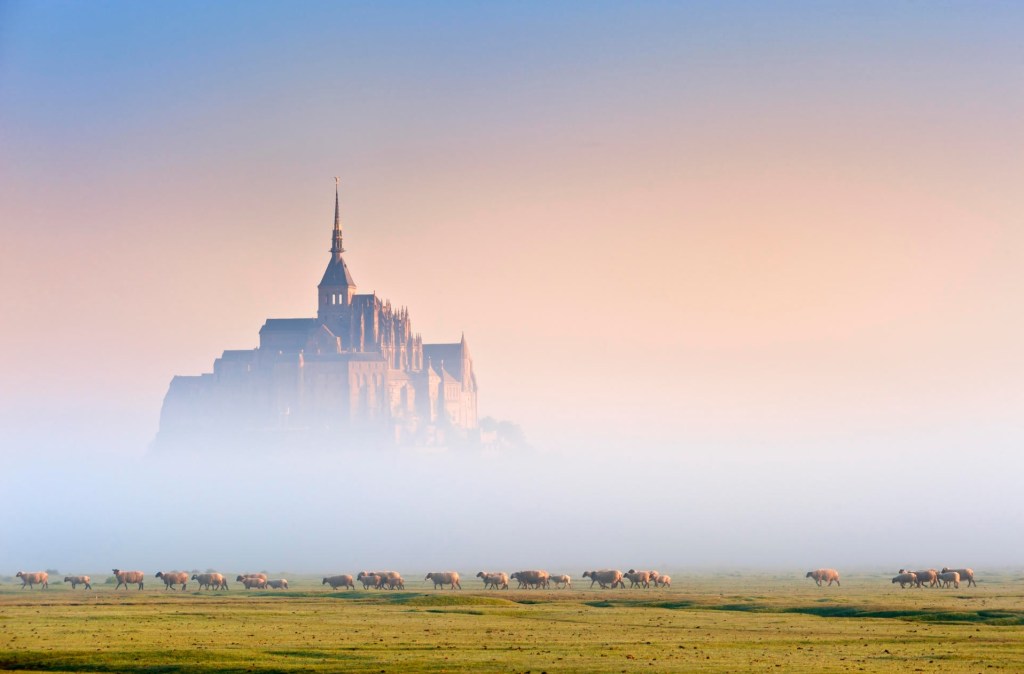 The penultimate castle: the inimitable Mont-Saint-Michel. There really is nothing like it anywhere on earth. It epitomizes the grandeur of the old world. From the moment I first saw it, I was utterly captivated. How can such a place of impossible beauty actually exist? It defies belief to see this monumental bastion of medieval wonder rising from the mists of time, piercing the lonely sky on its solitary fortress in the sea.