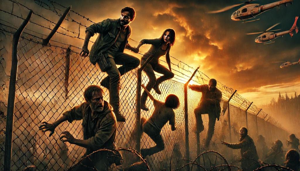 So it was myself, another guy, a woman, and two children—a little boy and girl. Apparently people had created barriers and fortifications to keep the aliens away, so there were a lot of high fences and barbed wire. Obviously it didn’t work though, but created some high tension moments when the sun finally set, and we were clamouring over the walls desperately, and the little girl got stuck and we had to rush over and help her just as the vines were about to get her. One scratch or prick from the vines would turn you into this zombie-like thing, and then you’d be the alien’s slave.