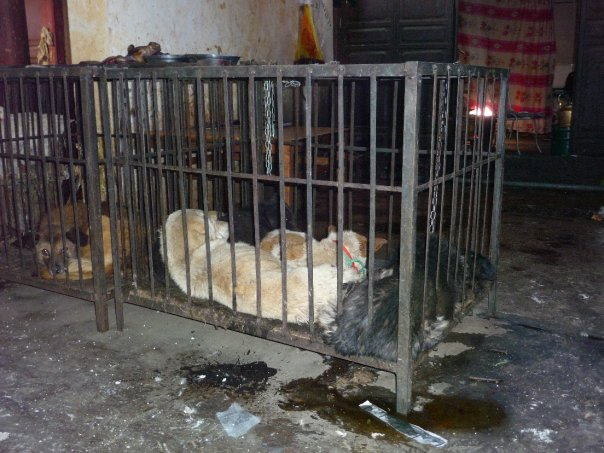 I was in Xiao lao po village (means mistress, seeing abandoned orphans from men who went back to their families in Hong Kong was sad) and part of Shenzhen Futian district. A guy had a dog tied up. I offered to buy the dog to free him. I was refused at the restaurant where he was captive. In another case, I used to pass by on the bus in Shenyang, Manchuria, not so far from where Pu Yi was held ( Fu Shin PSB prison), kept seeing a sign on a restaurant (note taur…taurus) it said “the happy dog” in English with a smiling pekingese. Enough said.