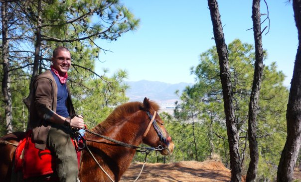 No amount of prompting could coax my horse into anything more than an irritated trot, and spurring his sides with my heels more often encouraged him to go in reverse than increase speed. When I dismounted to take a picture in the woods, he waited patiently, but as soon as I got back on, a fairly normal procedure for most horses I presume, he bucked and took off through the forest as fast as he could. “Whoa!” means nothing to a Chinese horse, and tugging on the reins in every way I knew how succeeded only in making him rear or pull his head back with no effect whatsoever. When I tied him off and got down to pet him, he first tried to bite me, and when I backed away he tried to kick me.