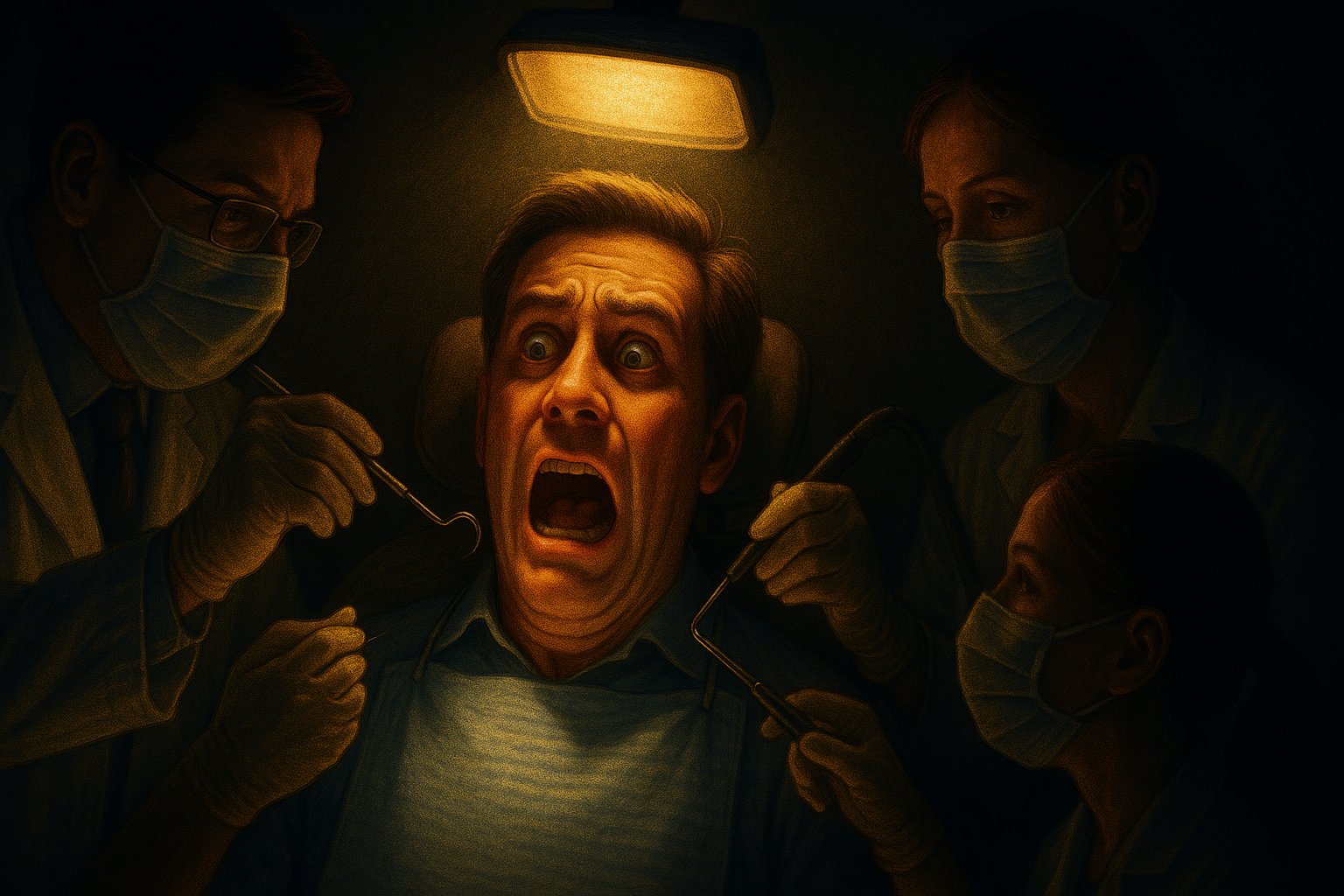 There’s something about having your mouth stretched wide while someone pokes their fingers around in your teeth, finding problems they have to fix that you have no idea about, using secret words and phrases that mean nothing to you–“Yeah, Jan, we’re gonna need a OM on the third CB, above the right irascible filigree we’re going to have an A25 jamboree.” Phrases you’re somewhat sure are just for your benefit, but if you ask, are always followed by a thoroughly confusing explanation, to which you simply nod and hope your ignorance goes unnoticed. It doesn’t.